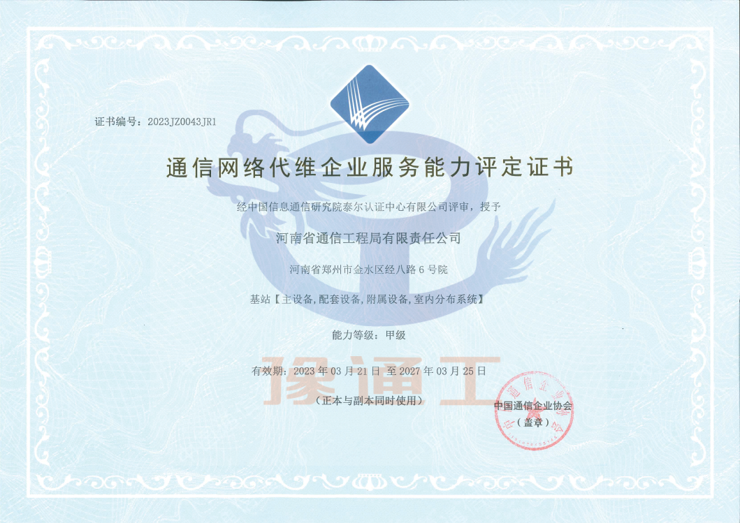 電子通信廣電行業(yè)(有線通信、無線通信)專業(yè)設計甲級